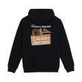 Felpa Dickies da uomo a tinta unita in colorazione nero con stampa sul petto e in grande sul retro in contrasto di colore. Modello con ampio cappuccio, maniche lunghe con polsini, tasca marsupio sul davanti, fondo con orlo dritto e molla elastica in vita. Tessuto in misto cotone.