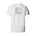 T-shirt The North Face da uomo a tinta unita in colorazione bianco con logo del brand sul petto e stampa sul retro in contrasto di colore. Modello girocollo, maniche corte e fondo con orlo dritto. Tessuto in cotone.