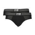 Slip Class Cavalli da uomo confezione da due paia a tinta unita in colorazione nero con scritta del brand posta nella molla elastica in vita in contrasto di colore. Modello con molla elastica in vita. Tessuto in misto Cotone.