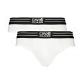 Slip Class Cavalli da uomo confezione da due paia a tinta unita in colorazione bianco con scritta del brand posta nella molla elastica in vita in contrasto di colore. Modello con molla elastica in vita. Tessuto in misto Cotone.