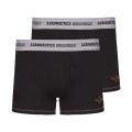 Boxer Aeronautica Militare da uomo confezione da due paia a tinta unita in colorazione nero con scritta del brand posta nella molla elastica in vita in contrasto di colore. Modello con molla elastica in vita e logo del brand posto sulla gamba in contrasto di colore. Tessuto in misto Cotone.