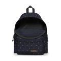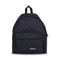 Zaino Eastpak a tinta unita in colorazione blu con pois su tutto l'articolo e con classica toppa del brand posta sul fondo. Modello con bretelle regolabili, manico singolo, chiusura con cerniera e marsupio frontale con piccolo logo del brand cucito in contrasto di colore. Capienza 24L. Materiale in nylon.