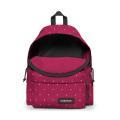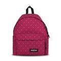 Zaino Eastpak a tinta unita in colorazione fucsia con pois su tutto l'articolo e con classica toppa del brand posta sul fondo. Modello con bretelle regolabili, manico singolo, chiusura con cerniera e marsupio frontale con piccolo logo del brand cucito in contrasto di colore. Capienza 24L. Materiale in nylon.