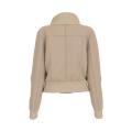 Felpa Guess da donna a tinta unita in colorazione sabbia scritta del brand cucita sul petto in tono su tono. Modello con classico colletto molto ampio, chiusura sul davanti con cerniera, comode tasche laterali, maniche lunghe con polsini e fondo con orlo dritto. Tessuto in misto Poliestere.