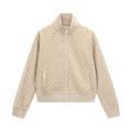 Felpa Guess da donna in colorazione sabbia  con classico logo del brand posto sul petto e pattern su tutto il capo in contrasto di colore. Modello con collo alto, chiusura sul davanti con cerniera, comode tasche laterali, maniche lunghe e fondo con orlo dritto. Tessuto in Poliestere.