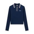 Polo Guess da donna a tinta unita in colorazione blu con scritta del brand posta sul petto in contrasto di colore e dettagli su gli orli. Modello con classico colletto, chiusura sul davanti con bottoni, maniche lunghe, fondo con orlo dritto e molla elastica in vita. Tessuto in misto Viscosa.