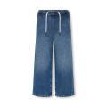 Jeans Only da bambina a tinta unita con classico lavaggio denim scuro. Modello palazzo, molla elastica in vita con lacci e comode tasche laterali. Tessuto in misto Cotone.