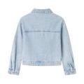 Giubbotto Name.it da bambina a tinta unita con classico lavaggio denim chiaro. Modello con classico colletto, chiusura sul davanti con bottoni metallico, taschini sul petto, maniche lunghe con polsini e fondo con orlo dritto. Tessuto in misto Cotone.