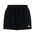 Shorts Guess da donna a tinta unita in colorazione nero con classica scritta del brand posto sulla gamba e dettagli con piccole strisce laterali in contrasto di colore. Modello con molla elastica in vita e comode tasche laterali. Tessuto in misto Cotone.