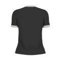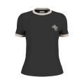 T-shirt Guess da donna a tinta unita in colorazione nero con logo del brand posta sul petto e orli in contrasto di colore. Modello girocollo, maniche corte e fondo con orlo dritto. Tessuto in Cotone.