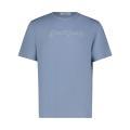 T-shirt Gaudi da uomo a tinta unita in colorazione cielo con scritta del brand posta sul davanti in contrasto di colore. Modello girocollo, maniche corte e fondo con orlo dritto. Tessuto in Cotone.
