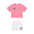 Completo Diadora da bambina in colorazione fucsia e bianco. Modello con t-shirt girocollo, stampe del brand sul petto in contrasto di colore, maniche corte e fondo con orlo dritto. Bermuda con molla elastica in vita con lacci e stampa del brand posta sulla gamba in contrasto di colore. Tessuto in Cotone.