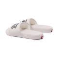 Ciabatte Vans da uomo a tinta unita in colorazione crema con classica scritta del brand posta sul davanti e targhetta posta sul retro in contrasto di colore. Modello con con fascia e suola in gomma flessibile. Materiale Sintetico oltre il 90%.