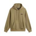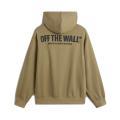 Felpa Vans da uomo a tinta unita in colorazione fango con stampa sul petto e in grande sul retro in contrasto di colore. Modello con ampio cappuccio, comoda tasca marsupio sul davanti, maniche lunghe con polsini, fondo con orlo dritto e molla elastica in vita. Tessuto in misto Cotone.