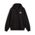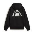 Felpa Vans da uomo a tinta unita in colorazione nero con stampa sul petto e in grande sul retro in contrasto di colore. Modello con ampio cappuccio, comoda tasca marsupio sul davanti, maniche lunghe con polsini, fondo con orlo dritto e molla elastica in vita. Tessuto in misto Cotone.