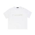 T-shirt Daniele Alessandrini da bambino a tinta unita in colorazione bianco con scritta del brand posta sul davanti in contrasto di colore. Modello girocollo con bottoni laterali, maniche corte e fondo con orlo dritto. Tessuto in Cotone.