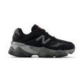 Scarpe New Balance da bambino in colorazione nero con dettagli e classico logo del brand posto lateralmente in contrasto di colore. Modello 9060 Lace con chiusura con lacci, intersuola ABZORB assorbe gli impatti grazie alla combinazione di ammortizzazione e resistenza alla compressione. Tomaia in pelle scamosciata sintetica e mesh.