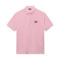 Polo Napapijri da uomo a tinta unita in colorazione rosa con bandiera del brand cucita sul petto in contrasto di colore. Modello con classico colletto con bottoni, maniche corte e fondo con orlo dritto. Tessuto in Cotone.