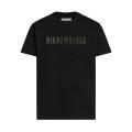 T-shirt Bikkembergs da uomo a tinta unita in colorazione nero con scritta del brand posta sul davanti in tono su tono. Modello girocollo, maniche corte e fondo con orlo dritto. Tessuto in Cotone.