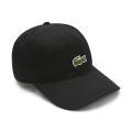 Berretto Lacoste da bambino a tinta unita in colorazione nero con classico logo del brand cucito sul davanti in contrasto di colore. Modello con classica visiera a becco e linguetta regolabile sul retro. Tessuto in Cotone.