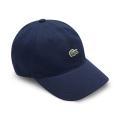 Berretto Lacoste da bambino a tinta unita in colorazione blu con classico logo del brand cucito sul davanti in contrasto di colore. Modello con classica visiera a becco e linguetta regolabile sul retro. Tessuto in Cotone.