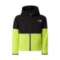 Giubbotto The North Face da bambino in colorazione nero e giallo fluo con classico logo del brand cucito sul petto e sul retro in contrasto di colore. Modello con ampio cappuccio, chiusura sul davanti con cerniera, maniche lunghe con polsini, chiusura sul davanti con cerniera, fondo con orlo dritto e molla elastica in vita. Tessuto in Poliestere.