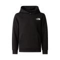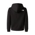 Felpa The North Face da bambino a tinta unita in colorazione nero con classico logo del brand posto sul petto e sul retro in contrasto di colore. Modello con ampio cappuccio, tasca marsupio, maniche lunghe con polsini, fondo con orlo dritto e molla elastica in vita. Tessuto in misto Cotone.
