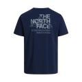 T-shirt The North Face da uomo a tinta unita in colorazione blu con logo del brand posto sul petto e stampa sul retro in contrasto di colore. Modello girocollo, maniche corte e fondo con orlo dritto. Tessuto in misto cotone.