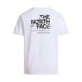 T-shirt The North Face da uomo a tinta unita in colorazione bianco con logo del brand posto sul petto e stampa sul retro in contrasto di colore. Modello girocollo, maniche corte e fondo con orlo dritto. Tessuto in misto cotone.