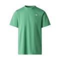 T-shirt The North Face da uomo a tinta unita in colorazione verde con logo del brand posto sul petto in contrasto di colore. Modello girocollo, maniche corte e fondo con orlo dritto. Tessuto in misto cotone.