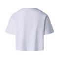 T-shirt The North Face da donna a tinta unita in colorazione bianco con logo del brand sul petto in contrasto di colore. Modello con taglio leggermente corto, girocollo, maniche corte e fondo con orlo dritto. Tessuto in misto cotone.