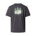 T-shirt The North Face da uomo a tinta unita in colorazione grigio antracite con stampa del brand sul petto e in grande sul retro in contrasto di colore. Modello girocollo, maniche corte e fondo con orlo dritto. Tessuto in cotone.